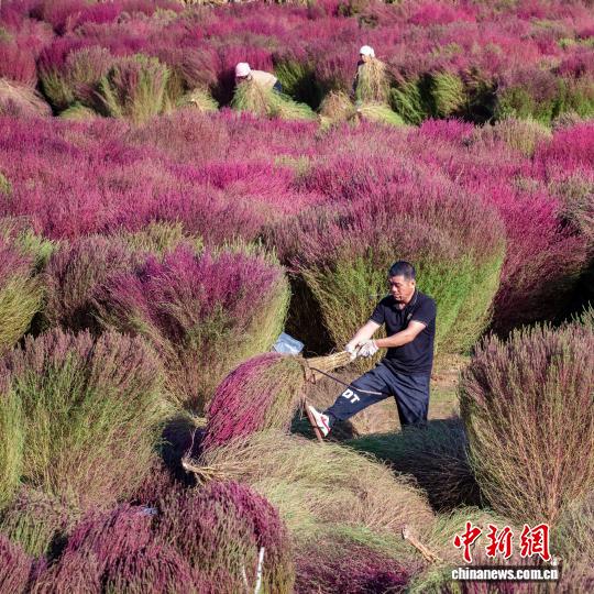 村民手中有工具,在扫帚草之间从一个地方到另一个地方,巧妙地执行了收获和分组的任务,运输和装载分组的扫帚草,并命令现场。 Wang Fengyun的照片